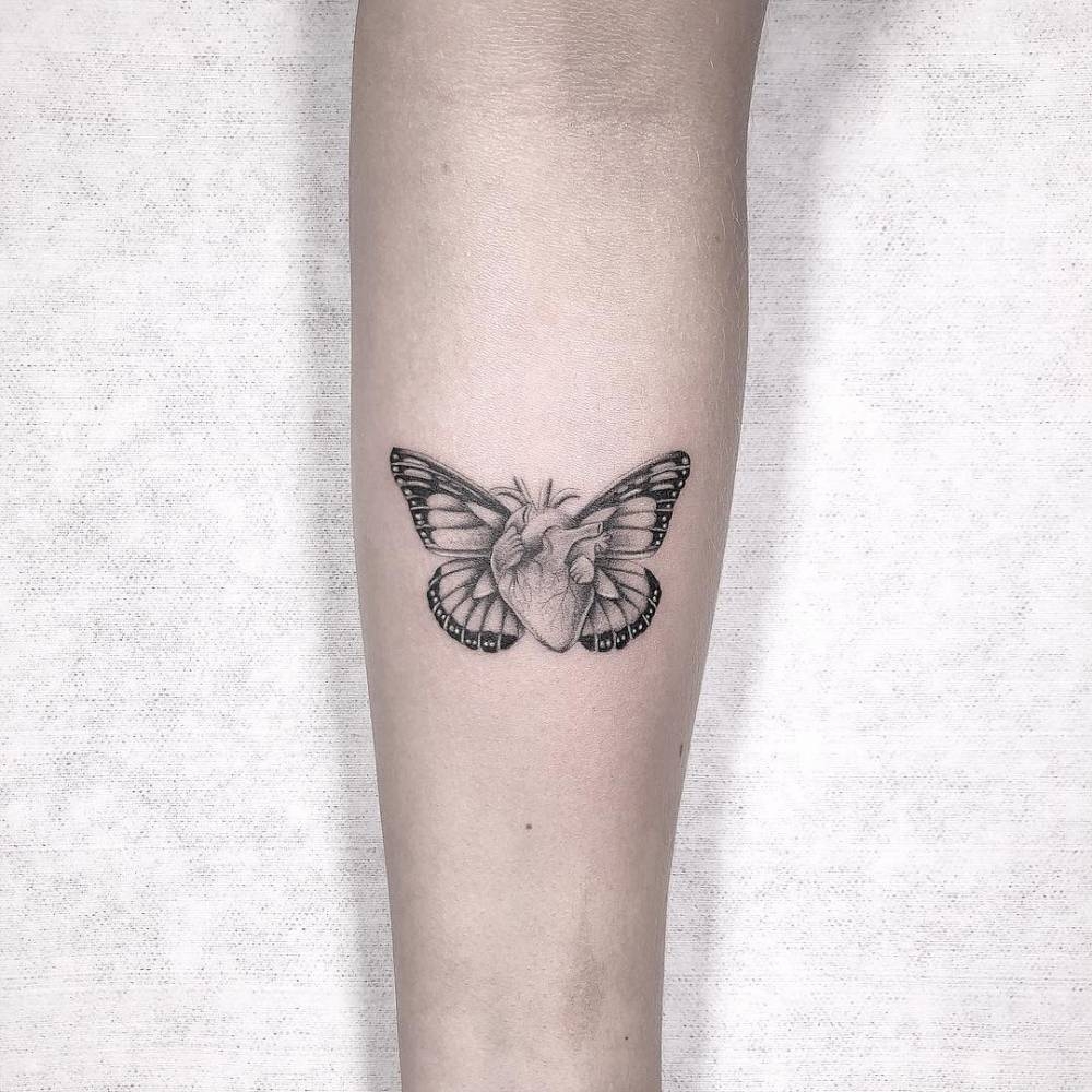 Micro realistic Butterfly Heart Tattoo On The Inner