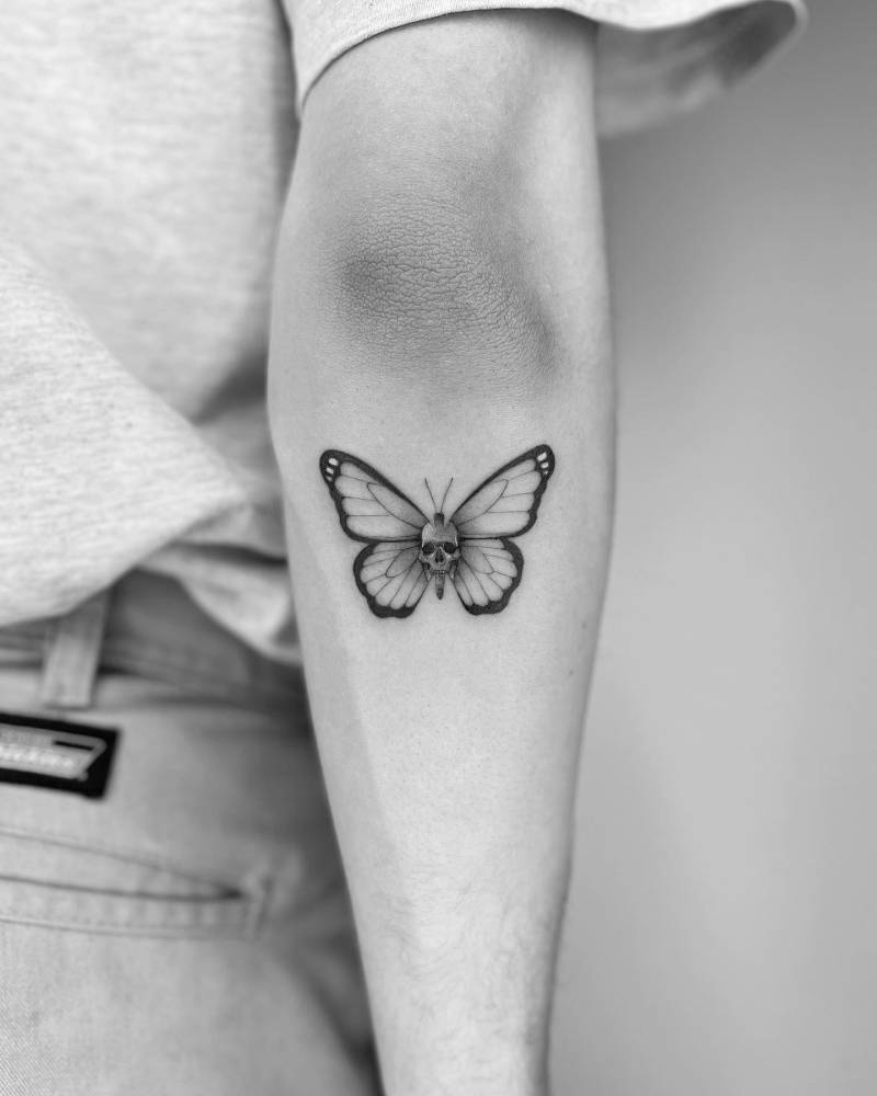 Butterflies symbolize transformation, beauty, and freedom, while skulls represent mortality and the cycle of life and death. Combining these two elements in a tattoo can represent a powerful message of change, growth, and acceptance.