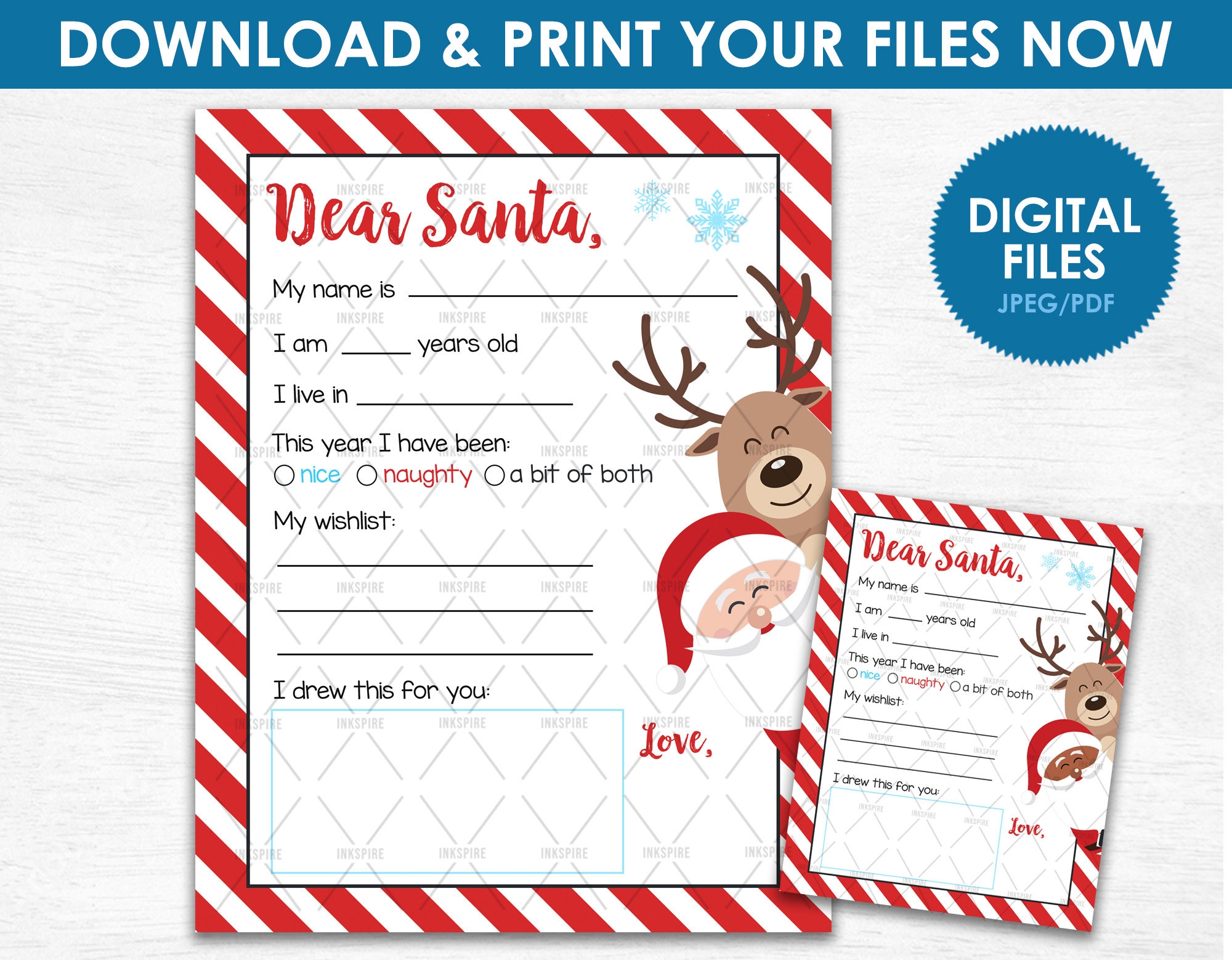 Printable Letter To Santa Claus INSTANT DOWNLOAD Dear Santa Letter Blank Coloring Page Kids Christmas Wish List Etsy