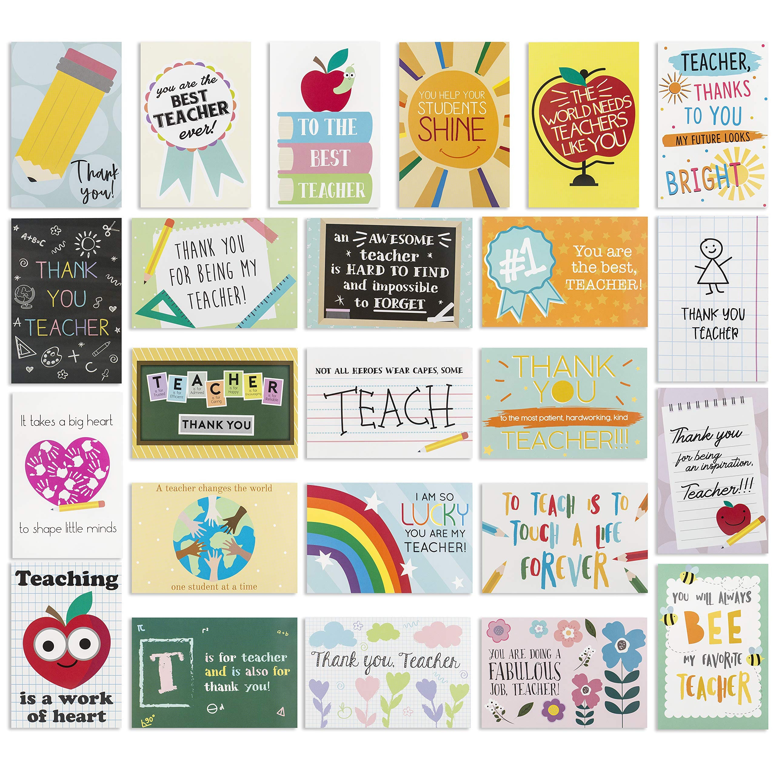 Amazon 24 Pack Teacher Thank You Cards Cute Teacher Appreciation Cards In 24 Unique Designs Greeting Card For Teachers Day Card End Of Year Teacher Cards Thank You Notes To
