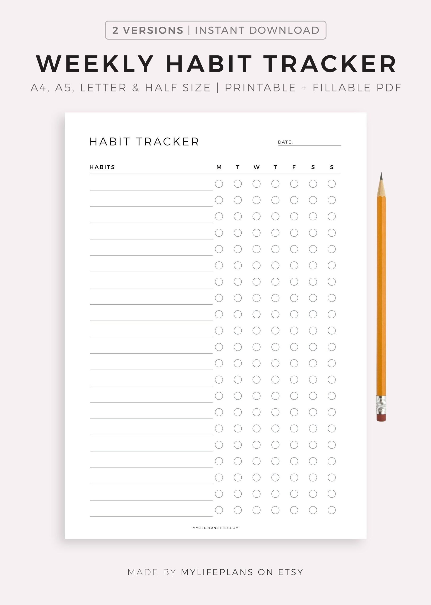 Habit Tracker Printable Planner Template Paper Trail Design